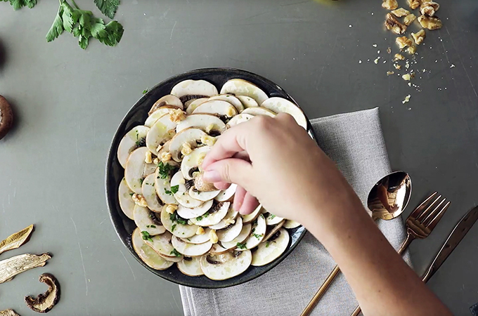 ¡Confía en Liebherr para recetas innovadoras como el carpaccio de champiñones y parmesano!